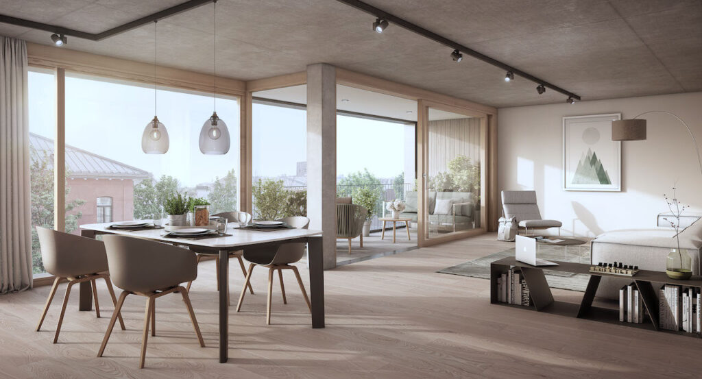 The Heuberg ist in dunkleren Farben gehalten, von den schwarzen Arbeitsplatten in der Küche bis hin zu den Fliesen im Bad. Diese geräumige Wohnung bietet alles, was Sie für einen komfortablen und stilvollen Aufenthalt brauchen.
